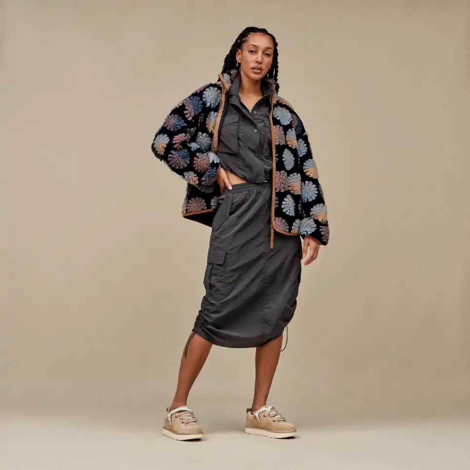 Unser Lo Lowmel ist so lässig wie ein Sneaker und so bequem wie ein Hausschuh. Der Newcomer in der Lowmel Familie hat ein niedriges Profil, das nur so nach Baggy-Jeans, 90er-Jahre-Musik und Partys am Strand schreit. Ein strukturierter Mix aus echtem Veloursleder und recyceltem, ballistischem Canvas-Mesh sorgt für den typischen Sneakerlook. Für den typischen UGG® Komfort ist die superleichte, federnde Außensohle aus Zuckerrohr-EVA zuständig.
